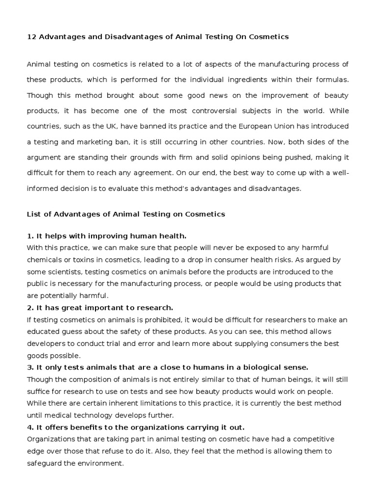12 Advantages And Disadvantages Of Animal Testing On Cosmetics Pdf Animal Testing Cosmetics